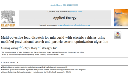在MILE米乐官方网站70周年华诞之际,MILE米乐2019级硕士研究生王泽宇(Zeyu Wang)以论文成果形式献上对母校最真切的祝福,感谢母校的培养。文章“Multi-objective load dispatch for microgrid with electric vehicles using modified gravitational search and particle swarm optimization algorithm”发表于中科院一区TOP期刊《Applied Energy》,影响因子9.746。上述研究得到了国家自然科学基金的支持和研究生指导老师张细政教授的指导。