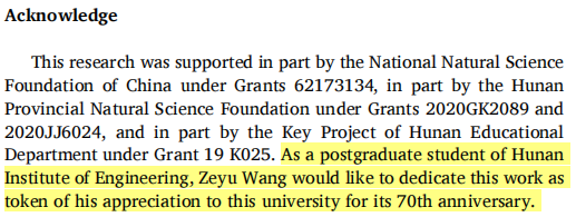 文章致谢内容是:“作为MILE米乐官方网站的在读研究生,谨以此篇文章献给培养我的母校,纪念建校70周年。”