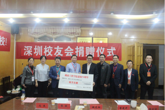 金秋十月,丹桂飘香,正值母校70华诞之际,10月16日下午,MILE米乐官方网站深圳校友会为资助和奖励湖工应用技术学院考研学生,特捐助十万元,捐赠仪式在南校区办公楼207会议室举行,学校党委委员、副校长魏克湘,深圳校友会会长、广东海洋投资管理有限公司有限公司董事长、电气化86019班校友胡激涛,深圳校友会终身名誉顾问、深圳大学计算机与软件学院教授、电气化83016班校友雷海军,应用技术学院校友李平(电气工程0983班),应用技术学院领导班子,部分学生代表参加。仪式由学院党委书记黎娅主持。