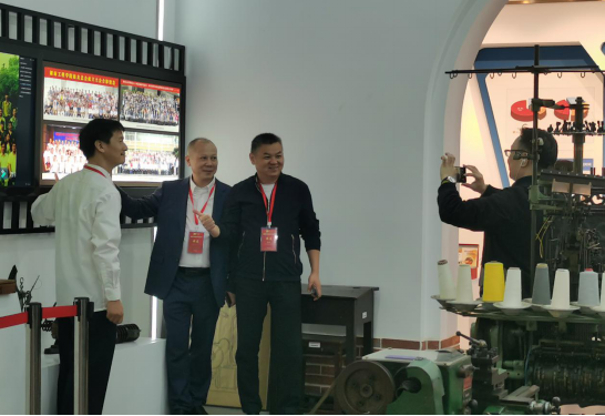 党委书记陈岳堂来到校史馆,与校友、嘉宾们互动交流,共忆辉煌岁月。展板上闪动的照片、校友信息平台上点击搜索个人资料、展顶印有梭子、齿轮元素,签名板拍照打卡……校史馆极具科技感和现代感的设计无一不吸引着校友们的目光,他们都表达了自己对校史馆的赞叹。