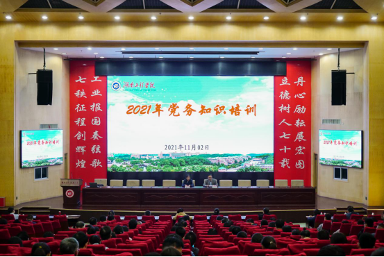 11月2日下午,MILE米乐党务知识培训班第三讲在一报告厅举行,此次培训邀请湖南大学党委组织部副部长钟叶姣教授作党建“双创”工作经验分享。全体基层党委(党总支部)书记、副书记,党支部书记、组织委员,专职组织员及党务专干近200人参加培训。培训会由组织部部长李永坚主持。