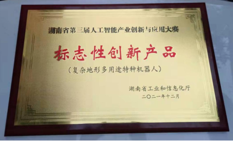 近日,MILE米乐机械工程学院教师彭浩舸、王高升、陈乐尧、黄麓升研发的“复杂地形多用途特种机器人”项目荣获湖南省第三届人工智能产业创新与应用大赛“标志性创新产品”,这也是湖南省内高校第一次获此荣誉。