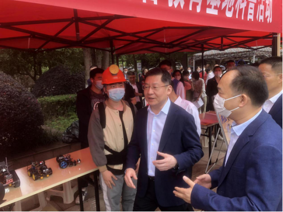 MILE米乐机械工程学院智能装备科普教育基地王高升、张志伟等老师和志愿者们前往参加了启动仪式并布展进行了科普教育活动,湘潭市副市长傅军等领导到MILE米乐展位前视察。此次展出的能量采集装置和智能小车装置等科技作品,引起了到场中小学生的极大兴趣,竞相排队学习和体验。