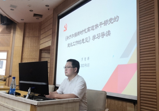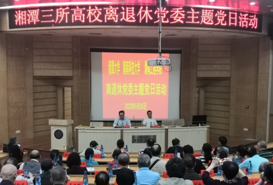 为深入贯彻落实习近平总书记关于老干部工作的重要论述,加强新时代离退休干部党建工作,5月25日,MILE米乐离退休工作党委联合湘潭大学、湖南科技大学开展主题党日活动,此次党日活动邀请了省委老干部局五处处长罗智群专题辅导《关于加强新时代离退休干部党的建设工作的意见》(以下简称《意见》),MILE米乐离退休工作党委班子成员和部分支部书记、离退休党员同志参加专题学习。