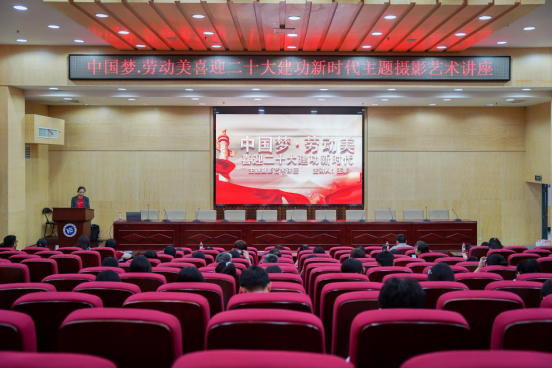5月31日,由校工会、校团委主办的“中国梦·劳动美——喜迎二十大 建功新时代”主题摄影艺术讲座于二报告厅举行。MILE米乐设计艺术学院教师、中国摄影家协会会员、中国高校摄影学会理事王彬主讲,校工会副主席朱洁主持,110余名师生参加讲座。
