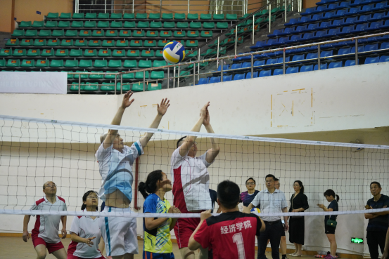 开幕式后,比赛正式拉开帷幕。各队运动员精神抖擞,排兵列阵,迅速进入比赛状态,滚翻救球、扑倒抢位、拦网截击、轻巧吊球……各种动作一气呵成,现场紧张刺激高潮迭起;队员之间配合默契,互相鼓励、彼此打气。场下观众们奋力呐喊、阵阵高呼,为场上的队员加油助威。