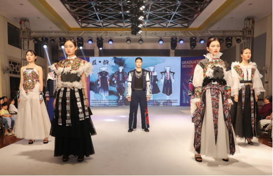 本次毕业汇报演出展示了多个系列的服装服饰,包含苗之韵、向阳而生、云上花瑶、苗尚新生、终朝采蓝、女性·力量、深海奇缘、静聆敦煌等篇章。服装从水墨刺绣的古色古香、自然万物的和谐共生、传统现代的巧妙融合、民族元素的独特韵味,再到五颜六色的视觉冲击……每一种风格都吸引着观众们的眼球,让大家目不暇接,从中感受到新时代中国青年的热血与朝气。