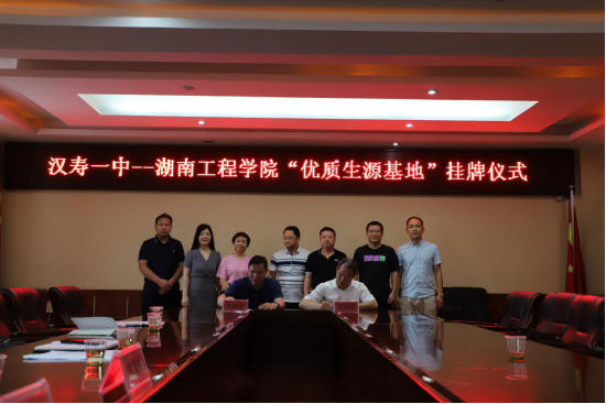 为建立与地方优质中学的深入合作,争取更多优质生源,6月25日—26日,党委委员、纪委书记齐路良带队前往汉寿县第一中学、第二中学举行“优质生源基地”共建签约及授牌仪式,汉寿第一中学副校长陈爱国,汉寿第二中学副校长熊伟君及各学校教师代表;纺织服装学院、学生工作处相关人员参加仪式。