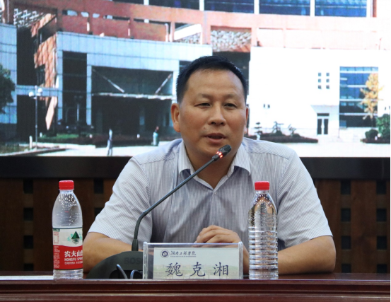 魏克湘向全体获奖同学表示祝贺,对指导老师团队的辛勤工作认真指导表示感谢。他表示,在短短一个月时间内,同学们通过创意、设计、制作与调试,完成这么多优秀作品,非常不容易。通过参赛,同学们理解并掌握了机械产品设计与制造的基本方法和流程,加深对专业知识的理解和运用,提高实践动手能力和团队合作能力;通过产品的讲解和展示,加强了演讲表达能力和沟通交流能力。他希望同学们在即将进行的企业实习和未来的工作中,发挥这种踏实肯干、动手能力强、创新能力强的优势,为我们国家的经济发展做出自己的贡献。