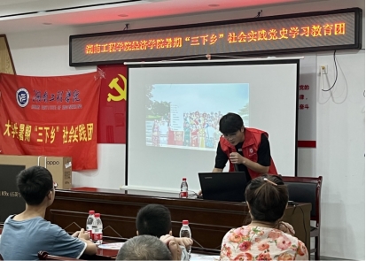经济学院实践团成员前往湖南省湘潭市岳塘区盘龙社区、阳光社区,围绕红色诗歌朗诵、党史故事宣讲、方言故事、普通话推广视频等方式,耐心教村民普通话发音。“北国风光,千里冰封,万里雪飘……”实践团成员周绍凇带领村民学习毛泽东的《沁园春·雪》,认真讲解诗歌的韵律,让大家感受中国语言文字之美。