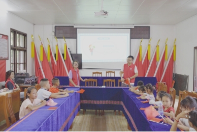 实践团成员教小朋友朗读顺口溜