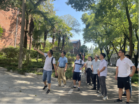 9月6日下午,学院党委书记覃波带领新进教师前往南校区参观,学院原党委书记谢骐担任向导和解说员。沿着南校区的主干道往前走,谢骐的解说从路两旁枝繁叶茂的香樟树开始,一教学楼、图书馆、机械楼、电气楼、苏式建筑,惜阴亭、沁馨亭等建筑见证着学校的发展历程,承载着老一辈湖工人办学治校、教书育人的艰辛和执着。