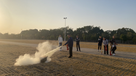在《条例》学习结束后,保卫处安全科负责人朱亮进行消防安全知识与技能培训。朱亮结合体育馆结构指导参训人员,如发生火灾,馆内钢架结构将有可能坍塌,应组织学生疏散,最佳疏散方式是沿墙角离开。朱亮对逃生技能、干粉灭火器的使用步骤与检查方法进行了详细讲解,还现场点火进行演示,并鼓励参训人员现场操作,以切实增强消防安全技能。
