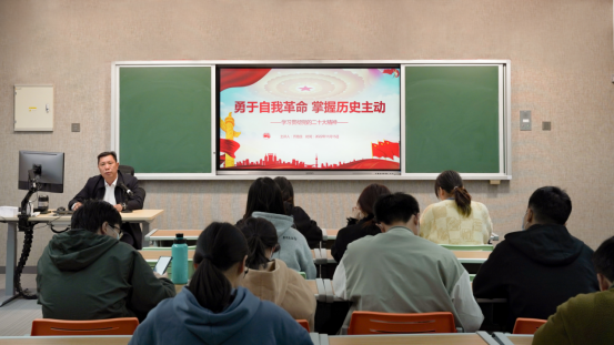 11月15日下午,校党委委员、副校长罗毅平,党委委员、纪委书记齐路良在学校智慧教室A502为2022年第二期预备党员上专题辅导课。主会场设在学校智慧教室,500余名学员分别集中在各分会场通过直播聆听的方式参加学习。
