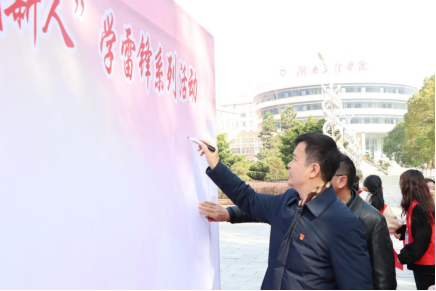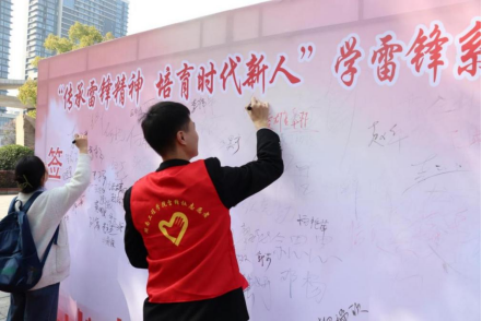 随后,全体师生在学习雷锋精神签名墙上签下自己的名字。