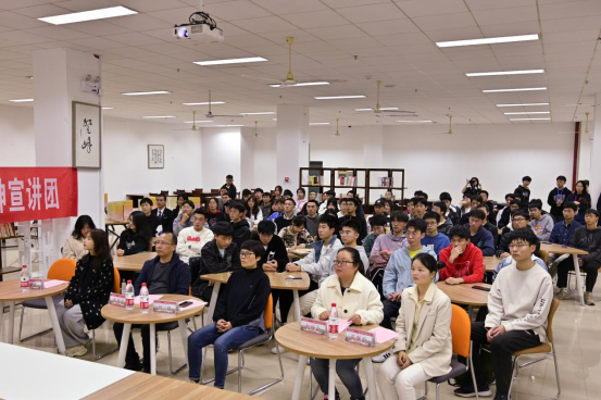 宣讲以符合青年学生特点的对象化、互动化形式开展。“红色青春”党的二十大精神宣讲团蒲凡、任雨凡、赵庭瑜等七名宣讲员从青年的视角,用详实的数据、精彩的图片、生动的案例讲述了“非凡十年,铸就丰碑”“两步走——全面建成社会主义现代化强国的战略安排”等主题内容。现场400余名团员青年认真聆听,踊跃发言,现场反响热烈。自动化专业2022级李同学说:“在这些同学的宣讲下,我对党的二十大精神有了更深层次的理解。这种走进同学们中来的宣讲方式很接地气、很有趣,更让我看到了很多优秀学子的榜样。”宣讲同时配以《学习二十大 奋进新征程》诗篇朗诵等环节,让党的二十大精神学习成了一种视听的享受。