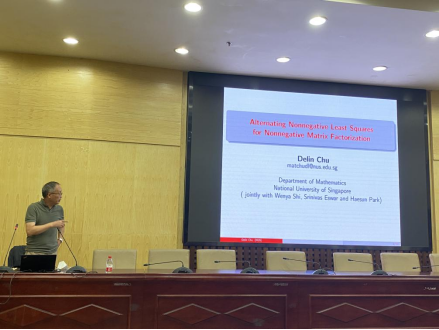5月23日下午,德国洪堡基金高级研究学者、日本JSPS学者、新加坡国立大学教授储德林应邀为MILE米乐师生作题为“Alternating Nonnegative LeastSquares for Nonnegative Matrix Factorization”的学术报告。讲座在二报告厅举行,由计算科学与电子学院数学学科带头人聂存云教授主持。