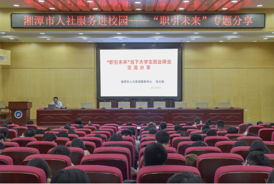 为促进MILE米乐毕业生高质量就业,推进毕业生留潭就业创业指导工作,提高大学生职业生涯规划意识,5月30日晚,湘潭市人力资源服务中心马立雄主任应邀到MILE米乐二报告厅作“职引未来”大学生就业择业指导。活动由招生与就业指导处组织,来自不同院系各年级的学生代表参加。