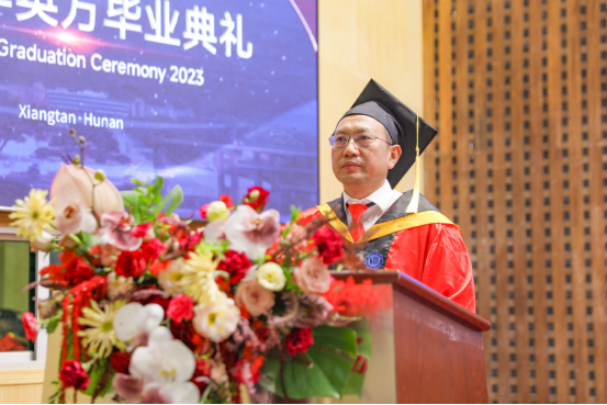 罗毅平代表MILE米乐官方网站向全体毕业生表示最热烈的祝贺和最美好的祝福。他肯定了本届毕业生在过去四年里所取得的优异成绩。“你们了不起!我为你们感到自豪!” 同时,他也对同学们提出了殷切期望,希望毕业生们能做信仰坚定的追梦者、砥砺奋进的担当者和中外文化交流的贡献者,不负党和人民的重托、不负青春、不负时代!
