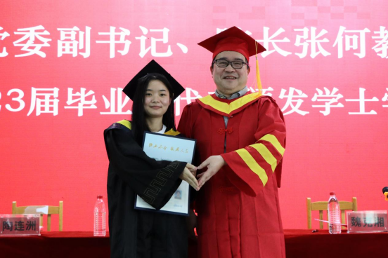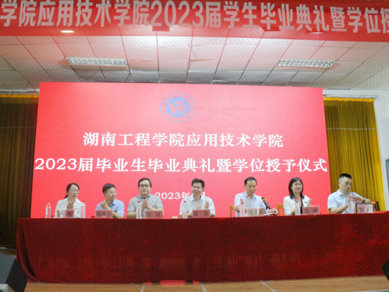 6月16日15:00,应用技术学院举行毕业典礼暨学位授予仪式,祝贺2023届毕业生顺利完成学业,走出校园,开启人生新征程。校党委副书记、校长易兵,党委委员、副校长魏克湘,应用技术学院院长张何,应用技术学院党委书记黎娅,党委副书记陶连洲,副院长闵杰、刘杰,全体辅导员、班主任共同到场见证2023届应院学子成长蜕变的重要时刻。典礼由魏克湘主持。