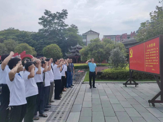 在通道转兵纪念馆广场上,坪村镇铺坪村几十名党员在MILE米乐派驻铺坪村党支部第一书记刘树忠的带领下,举起右手,用铿锵有力的声音重温入党誓词,表达对党的忠诚、对全面贯彻落实“乡村振兴战略”的信心和决心。