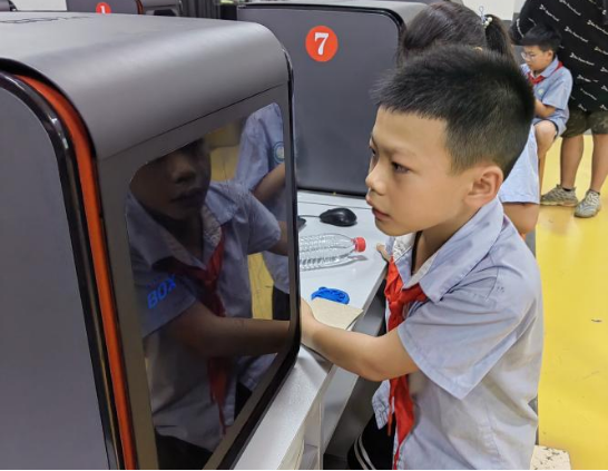 在智能制造实训室,孩子们通过参观智能产线和观看视频,了解到智能产线的工作流程;在线切割实训室,大家通过加工认知体验,又学习了数控电火花线切割的发展历程及加工原理;在3D打印和激光切割实训室,小学生们一次次惊叹于激光加工、3D打印等高科技,不仅被精美的实训作品所吸引,同时也在实训老师的指导下,亲身参与了作品的制作,见识了科技的神奇力量。
