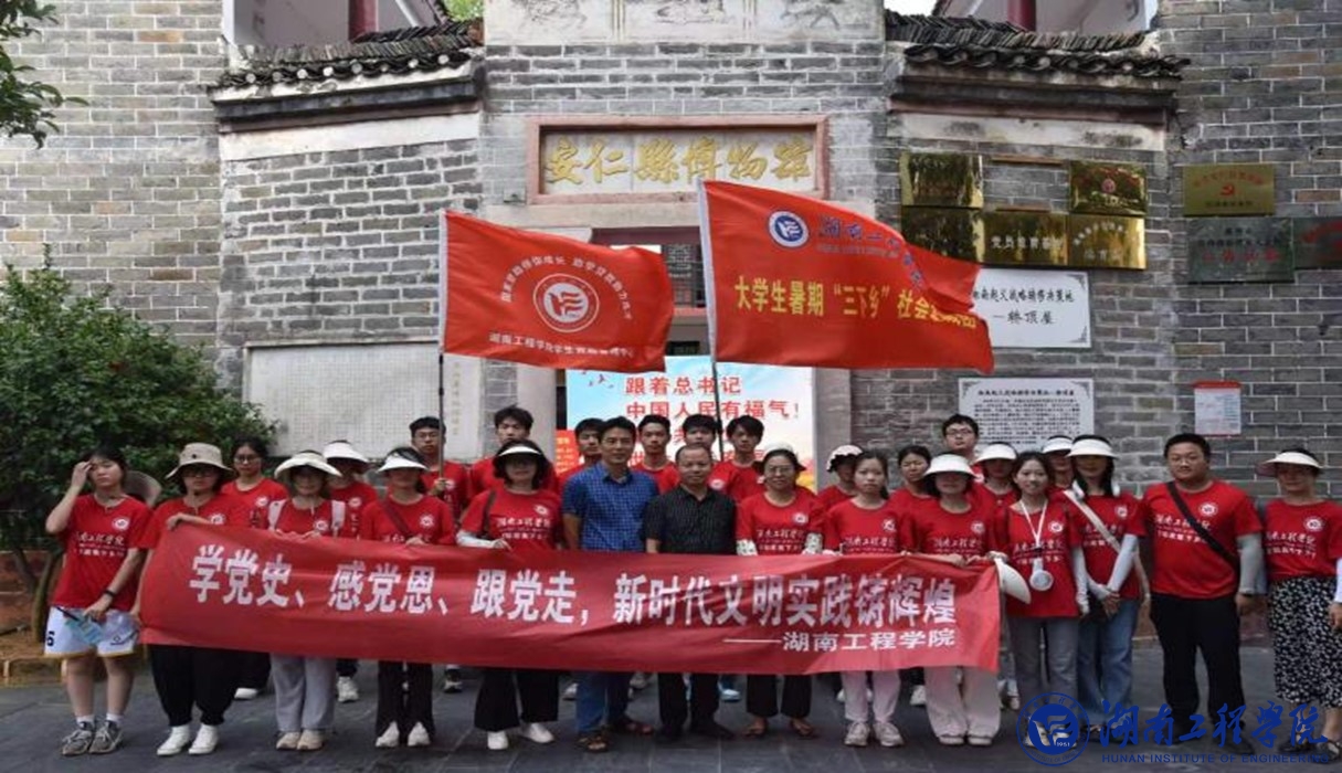 红色是实践团的底色。红色的队旗飘扬在湛蓝的天空,实践团走过黛瓦白墙,先后走进开国中将唐天际故居、中国革命的“福地”——轿顶屋、安仁党史馆等,探寻安仁红色文化足迹,传承红色文化基因,赓续红色血脉。