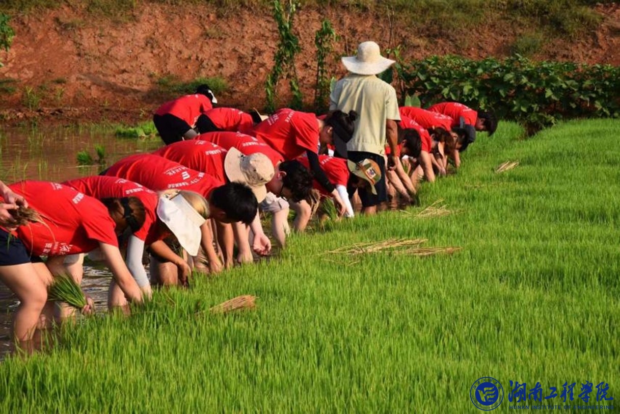 绿色是实践团的特色。为更好地践行以劳树德、以劳增智、以劳强体、以劳育美的理念,实践团在“劳动创造美好,奋斗成就未来”的口号声中迎着朝霞走进水田,沉浸式体验扯秧插田等田间劳作,体味汗滴禾下土的辛劳,感受站在一片绿油油的田野中端稳自己饭碗的喜悦。