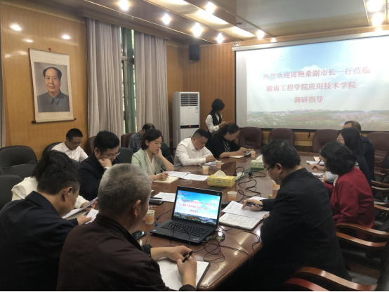 10月30日上午,湘潭市副市长周艳希等一行来学院调研。双方在学院办公楼207会议室召开座谈会。MILE米乐官方网站党委委员、副校长向前,应用技术学院相关负责人,湘潭市教育局、高新区等部门负责人参加座谈。会议由向前主持。