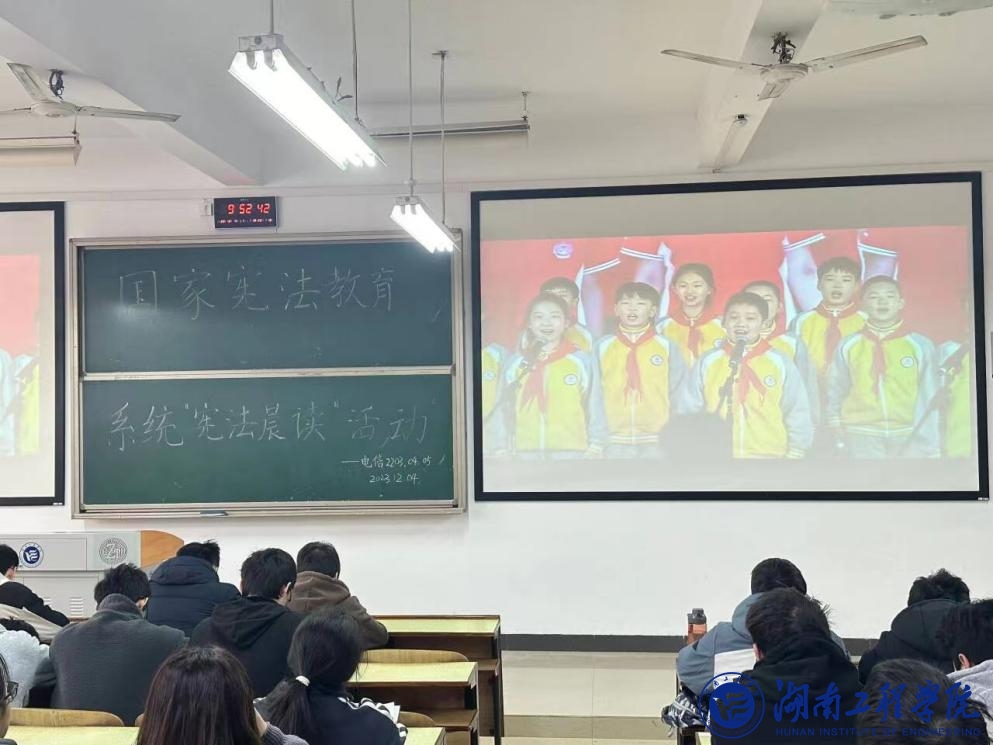 12月4日上午,学校开展了2023年国家宪法日教育系统“宪法晨读”活动。全校学生通过普法网收看了由教育部领导领读宪法网络直播并参加同步跟读的活动。随后,在主会场由老师领唱歌曲《宪法伴我们成长》,同学们在各分会场教室里跟唱。