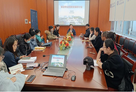 1月9日下午,外国语学院英语专业创新发展研讨会在F119会议室举行。校党委委员、纪委书记齐路良,外国语学院全体院领导、英语教研室主任全体教师参加,共同探讨英语专业创新发展的方向与策略。此次研讨会由外国语学院党总支书记陈亚琼主持。