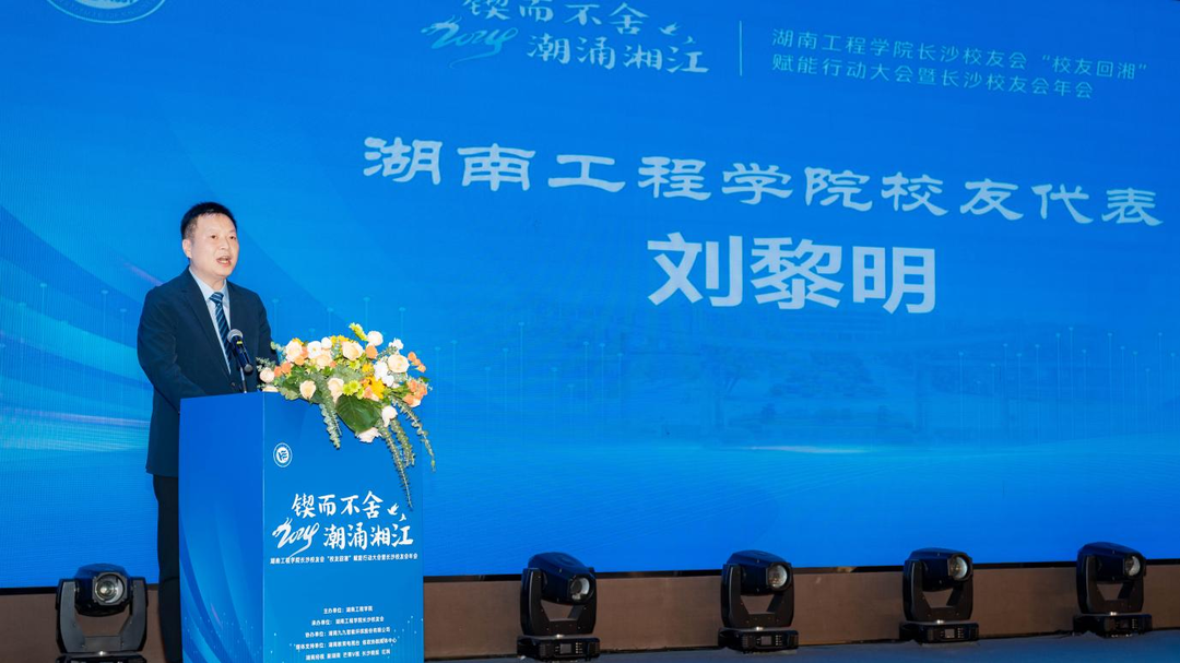 湖南九九智能环保股份有限公司 、维希艾环保新材料(上海)股份有限公司 、湖南诺贝斯特科技有限公司 、湖南爱十玩科技有限公司等单位与学校进行了合作签约,签约项目涉及智能制造、大数据、新能源、航空、环保、新材料等领域。校友们还围绕《工矿企业减污降碳数智化解决方案》、《低空经济迎发展,展翅万亿新赛道》、《智能基座及融合技术行业应用》、《环保之星,从校园走向未来》、《科技创新未来 赋能企业发展》等热点产业主题进行了分享。中共长沙市委原副书记、省农村农业厅原党组副书记、副厅长欧代明代表校友发言,他深情地分享对母校独特的情怀和热爱之情,勉励学弟学妹努力工作,脚踏实地,为母校的发展贡献力量。湖南省“校友回湘”工作专班执行主任周韶峰为校友们深度解读了“校友+人才”返乡战略、“校友+科技”兴湘计划、“校友+项目”聚湘行动、“校友+企业”来湘趋势以及“校友+教育”强湘愿景这五大核心内容。