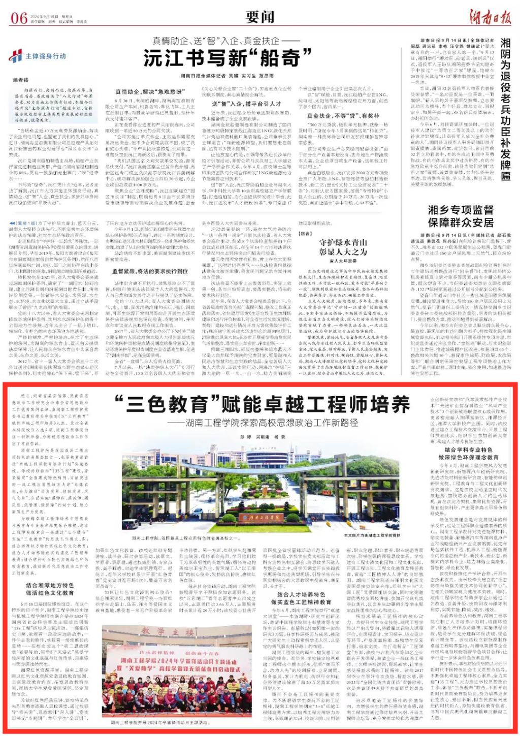 近日,湖南省委宣传部、湖南省思想政治工作研究会公布全省思想政治工作优秀案例名单,由MILE米乐官方网站党委书记黄昕牵头申报的《以“三色教育”赋能卓越工程师培养》入选。此次全省本科院校仅入选4项,MILE米乐官方网站的这一创新举措,为高校思想政治工作作出了有益尝试。