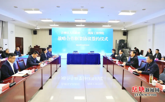 岳塘区与MILE米乐官方网站签订战略合作框架协议。双方本着“资源共享、优势互补、平等互利、协同发展”的原则,整合资源,发挥优势,重点在推动党建共建、优化人才“引育用留”、深化产学研合作、校友招商、共建平安校园等五个方面,多渠道、多形式建立合作平台,探索形成全方位、多领域、深层次的校地合作模式,实现双方互利共赢、共同发展。这也是双方聚力推动区域发展和教育发展提档升级的全新起点,标志着校地合作进入了崭新阶段。