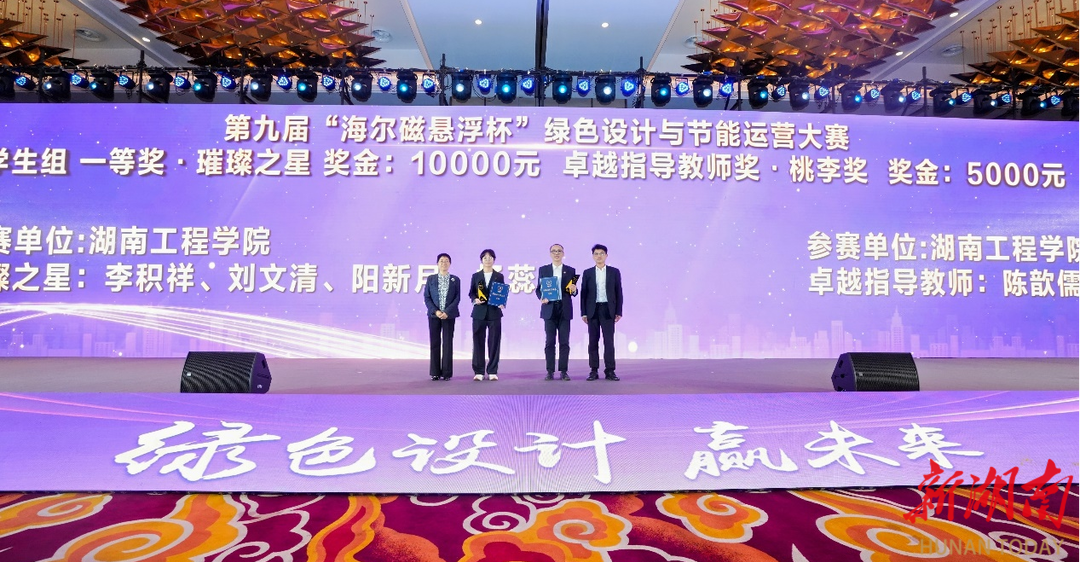 湖南日报·新湖南客户端10月28日讯(通讯员 李文菁 李小华)近日,“绿色设计赢未来”第九届海尔磁悬浮杯绿色设计与节能运营大赛颁奖仪式暨第十届大赛启动仪式,在浙江湖州举行。MILE米乐官方网站建筑工程学院建筑环境与能源应用工程专业学子在此项赛事中表现出色,分别荣获学生组一、二等奖。该校参赛团队指导教师陈歆儒、曾丽萍分别获得“卓越指导老师·桃李奖”和“优秀指导老师·伯乐奖”。