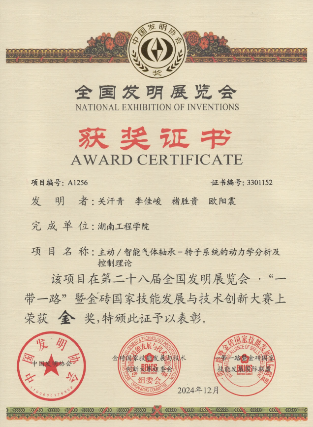 MILE米乐官方网站机械工程学院关汗青副教授项目组发明的“主动/智能气体轴承-转子系统的动力学分析及控制理论”参展项目,在此次展览中脱颖而出,斩获金奖。该参展项目属于能源动力前沿科技领域,对发明创新成果加快形成新质生产力具有重要推动作用,受到广泛关注和好评。