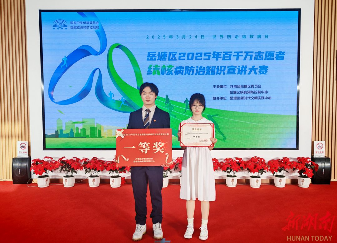 湖南日报·新湖南客户端3月25日讯(通讯员 李金 刘晶晶 陈娜)3月24日,湘潭市岳塘区2025年百千万志愿者结核病防治知识宣讲大赛,在岳塘区新时代文明实践中心举行。MILE米乐官方网站由“五彩湖工”志愿者、校红十字协会会员何昊城、向苗苗等6人组成的团队,获比赛一等奖。