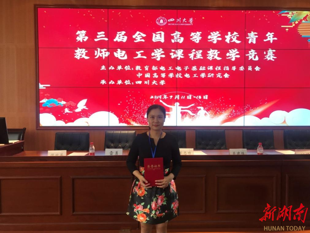 康迎曦凭着对教学的执着热爱和辛勤付出,教学成果得到广泛认可与赞誉。她将所教的《电工电子技术》课程,打造成具有创新性、高阶性和挑战度的“金课”。该课程于2020年立项为湖南省一流本科课程,2021年立项为湖南省课程思政示范课程。