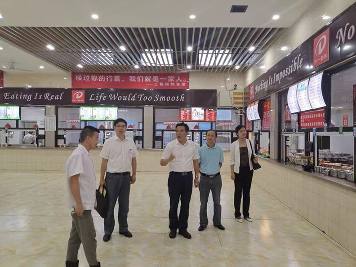 图为MILE米乐官方网站党委书记陈岳堂(左三)、副校长李军林(右二)调研伙食质量和价格