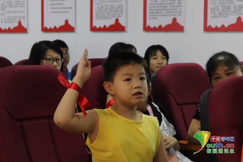 孩子们积极举手互动,回答有关垃圾分类的问题。中国青年网通讯员 梁艳 摄