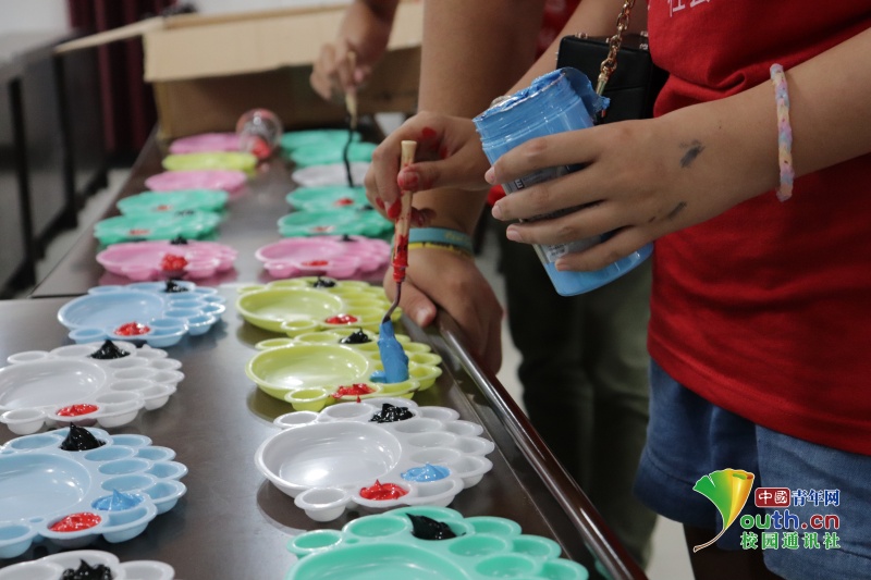 志愿者提前准备绘制所需颜料。中国青年网通讯员 梁艳 摄