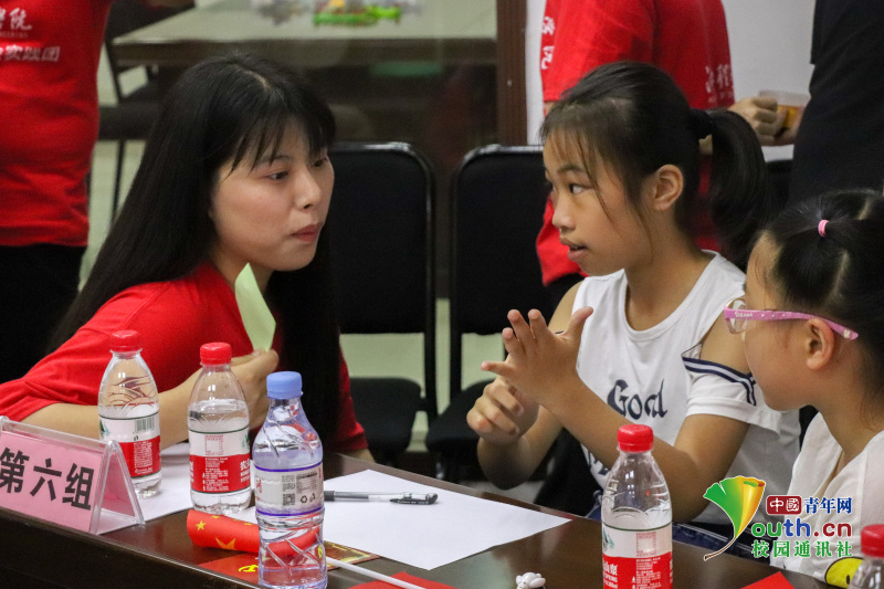 ?志愿者和小朋友在出神入化的讨论红色故事。中国青年网通讯员 胡明辉 摄