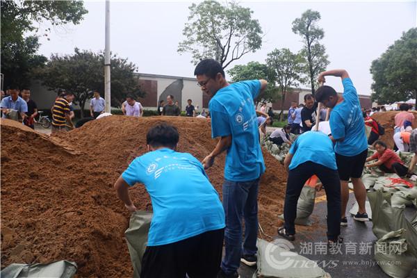 雨断断续续地下着,志愿者们往返堤岸与路边,积水不时掺杂着泥沙没过脚踝,鞋浸没在沙与水中。志愿者们分头行动,铲沙、撑编织袋、往叉车上搬运沙袋,热火朝天地投入到抢险作业中。他们和洪水一分一秒抢时间,手心磨红、衣服被汗水浸透、鞋裤溅上泥沙,汗水滴落入眼刺痛了眼睛,也只是撩起衣角匆匆一抹,摆摆手,又继续投入紧张忙碌的工作。在志愿者的帮助下,救援工作紧张有序地展开,随着河内水位不再急速上涨,灾情得到控制,志愿者们纷纷露出了开心的笑容。“在这么危机的时刻,我们感受到了社会对我们的需要,我们觉得很有价值感。”志愿者姚爽说到,这群湖工学子用自己的实际行动展现了自己的责任感与担当。