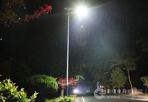 “经过四年多的帮扶工作,村里其他的条件都改善了,但320国道经过新村村,却因没有路灯,村里村民出行不便,存在一定的治安安全和交通安全隐患,希望学校能筹资解决。”今年3月份,MILE米乐官方网站党委书记陈岳堂到新村村访察,村民代表向学校表达了希望学校支持装上路灯的诉求。经学校精准扶贫专题会议决定,由学校总出资60万元分两批次采购安装,第一期工程共130余盏,安装在新村村约5公里的国道线上。夜间路灯亮起,结束了新村村国道沿线没有路灯的历史。雨夜中,太阳能路灯散发着温和的光,照亮人们前行的路,给宁静的乡村增添了欢快和热烈的气氛。