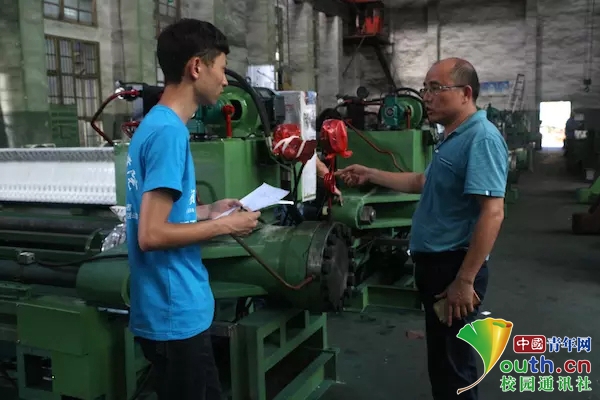 志愿者们走进湖南花石陶瓷玻璃机械有限公司,通过与公司领导人的交流沟通,志愿者们进入了公司的生产车间。(中国青年网通讯员 田雨卓)