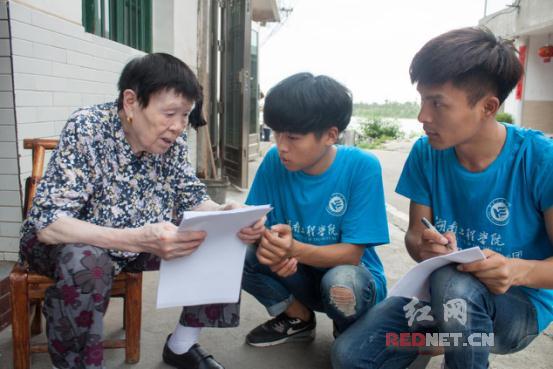 “一总工,二总谷,三至六总红绿布,七总八总瓷器铺”一位年长的老人,给大家数着十八总的童谣,在渌口老街的街头,上了年纪的老人随处可寻,他们热情的向志愿者们介绍老街的历史,老人们说古时候的湘潭城位于湘江边,主体部分就是沿着湘江河边的一条老街,这条老街每过一到两里有一个集市,这种集市就被称为“总”。现今的十八总中一到八总就位于渌口镇。从老人的讲述中似乎可以看到昔日十八总的辉煌。时值夏雨季,连日的暴雨使得地势低洼的老街大部分都被淹没,在渌口的几处未被淹没地界,时不时可以看到无人住的老房子,上头还挂着供销社的招牌,墙壁上依稀可见一些毛主席语录。在渌江边的伏波公园上,就有毛泽东主席曾经在渌口考察过湖南农民运动时在伏波庙借宿的旧址。不经意间发现,重走了一遍革命路,重拾了一回红色精神。