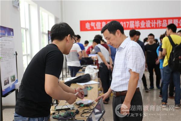 “这次公开答辩的亮点是同时举行毕业设计作品展,由同学现场展示自己的设计作品,师生评委当场答辩。”该校电气信息学院院长唐勇奇表示,以作品展的形式来进行公开答辩一方面是对毕业生四年学习效果的直观检验,另一方面也给低年级学生一个很好的示范,同时对老师的毕业设计指导工作也有很好的鞭策作用。现场,电气信息学院各专业的老师和学生在一个个展台前与参与答辩的毕业生仔细交流,从作品设计的原理到作品展示的效果,从毕业论文的修改到设计作品的改进,毕业生们认真地思考和回答现场师生提出的每一个问题。
