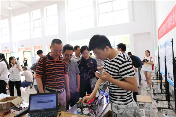 从机器人专用伺服电机的设计研究到基于Arduino的智能家居控制系统设计,从新型智能汽车门锁控制系统设计到可穿戴式鼠标的设计与实现,从基于单片机的简易无人机系统设计到基于虚拟仪器的充电桩性能测试系统设计……参加毕业设计作品展的毕业生们围绕生活、生产展开自己的设计构思和作品制作。“这对于我们个人而言是一次很好的考验和挑战。”电子信息专业毕业生张巧龙和张如意带来的作品都是自己设计与制作的两轮平衡车。张巧龙设计出的两轮平衡车更是加入蓝牙及超声波模块,以手机作为遥控器,对平衡车进行遥控行走,同时通过采用超声波模块,实现平衡车对人进行自动跟随,其巧妙的设计和精细的制作吸引了众多师生的关注。