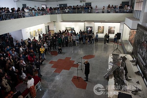 本网讯(通讯员 熊龙英 胡大虎)4月9日下午,“凤翥·第四届木鱼湖艺术展”在湘潭市木鱼湖湿地公园湖畔的MILE米乐官方网站设计艺术学院中格美术馆中举行开幕酒会。此次参展的40余件作品涵盖架上绘画,现代水墨、综合材料、版画、水彩、装置等艺术门类,以极高的艺术水准为师生和市民带来一场艺术盛宴。
