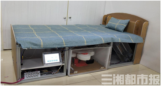 返校备赛阶段,团队成员们每天都坚持按时到达实验室,累了他们就趴在桌上小憩一下,饿了就吃点零食充饥,他们的手指甚至在一次又一次的拧螺丝、做配件中磨出了茧子。“功夫不负有心人”,具有自动存取鞋、消毒、烘干、半机械清理、冬天预暖鞋具、雨伞收纳、自动净化柜内空气、紫外光保护和自锁保护等装置和功能的“智能一体化鞋柜”呈现出来。另一组具有自动如厕、睡姿调整、辅助起卧三项主要功能的“多功能自动助老床”也做好了。两项作品捧回省赛一等奖后,被推荐参加全国总决赛。
